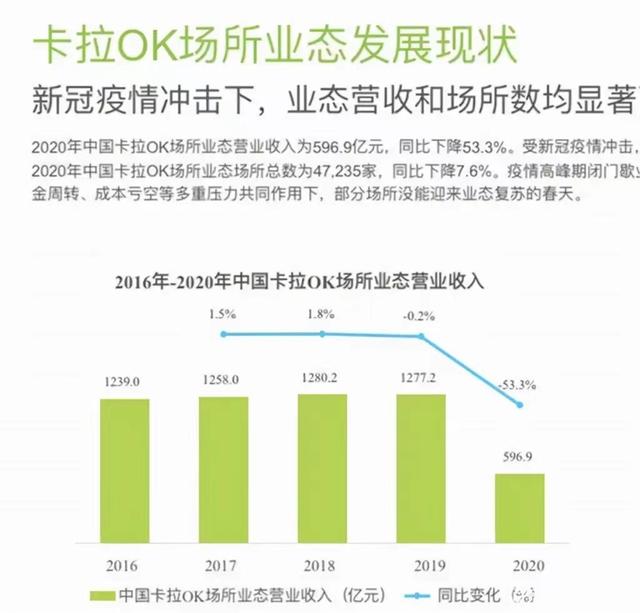 事實上,在全球疫情之前,線下推廣KTV已經(jīng)開始低迷了。根據(jù)展望研究所的數(shù)據(jù),從2015年到2016年,傳統(tǒng)式KTV進入經(jīng)濟下滑,門店數(shù)量急劇下降。2016年以后,雖然銷售市場有所回升,但總數(shù)仍缺乏5萬家和。