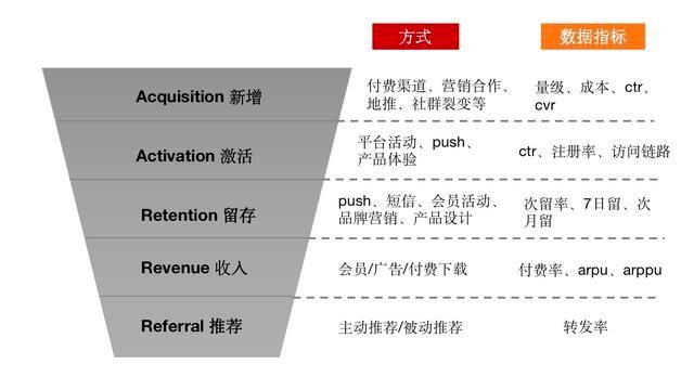 由此,介紹一下用增比較普適的一個概念模型:AARRR。