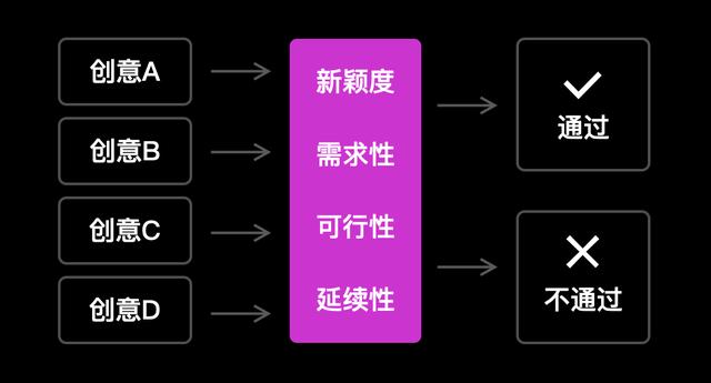 當然,無論是自我質(zhì)疑還是外部批評,都比較依賴于個人經(jīng)驗和知識背景,為了讓創(chuàng)意篩選的過程更加客觀,我們還可以通過以下四個維度的對比來檢驗創(chuàng)意。